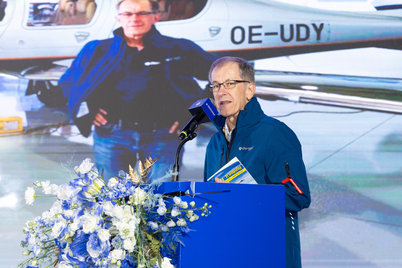 Diamond pilot and long-term partner Hubert Trunzer from German who located in Thailand shared over two decades of collaboration with Diamond Aircraft, detailing his dedication to serving Diamond clients. He described how Diamond aircraft have bridged his career and family legacy, spanning two generations of aviators.